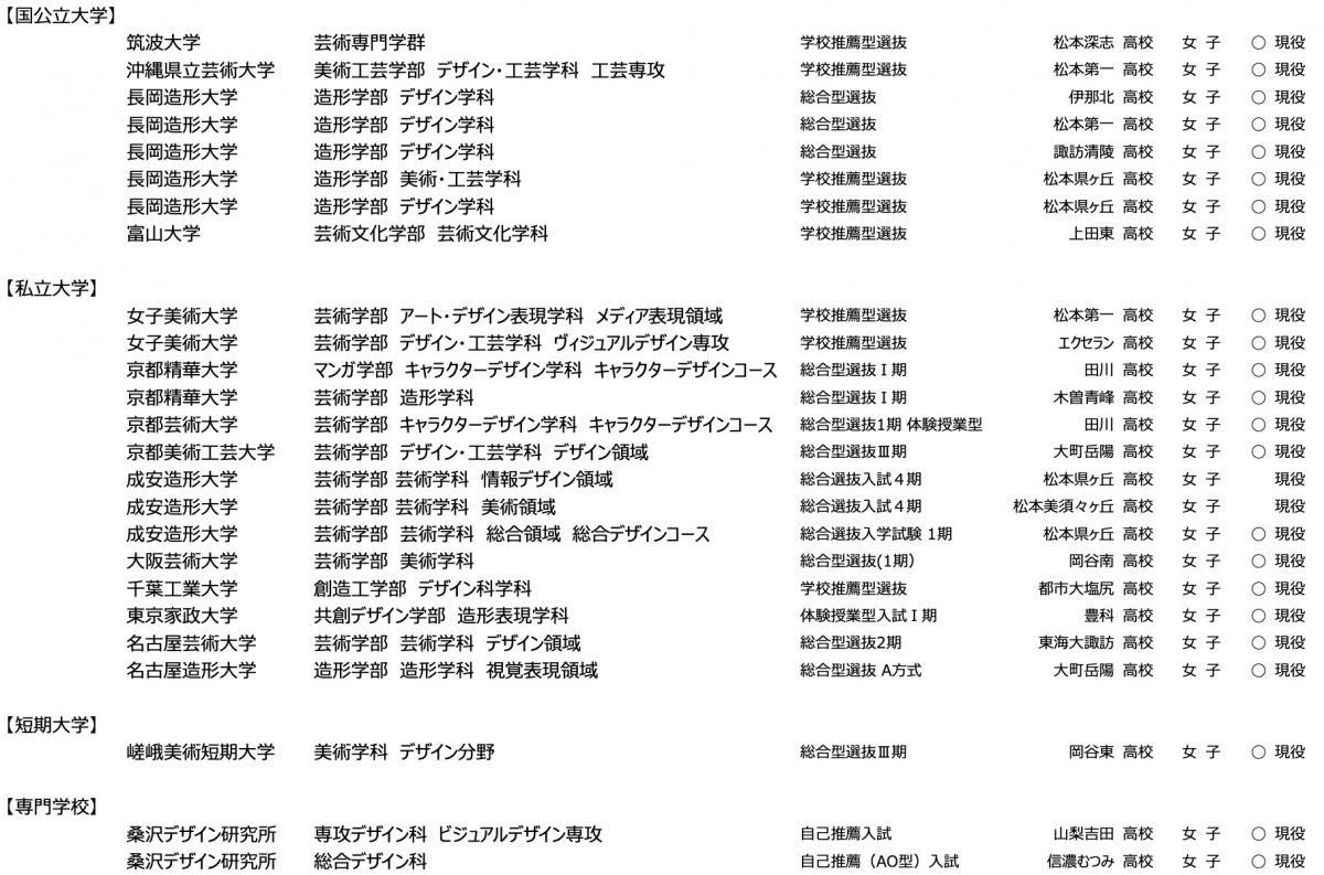 2026年度 芸大・美大 総合型選抜・学校推薦型選抜合格者